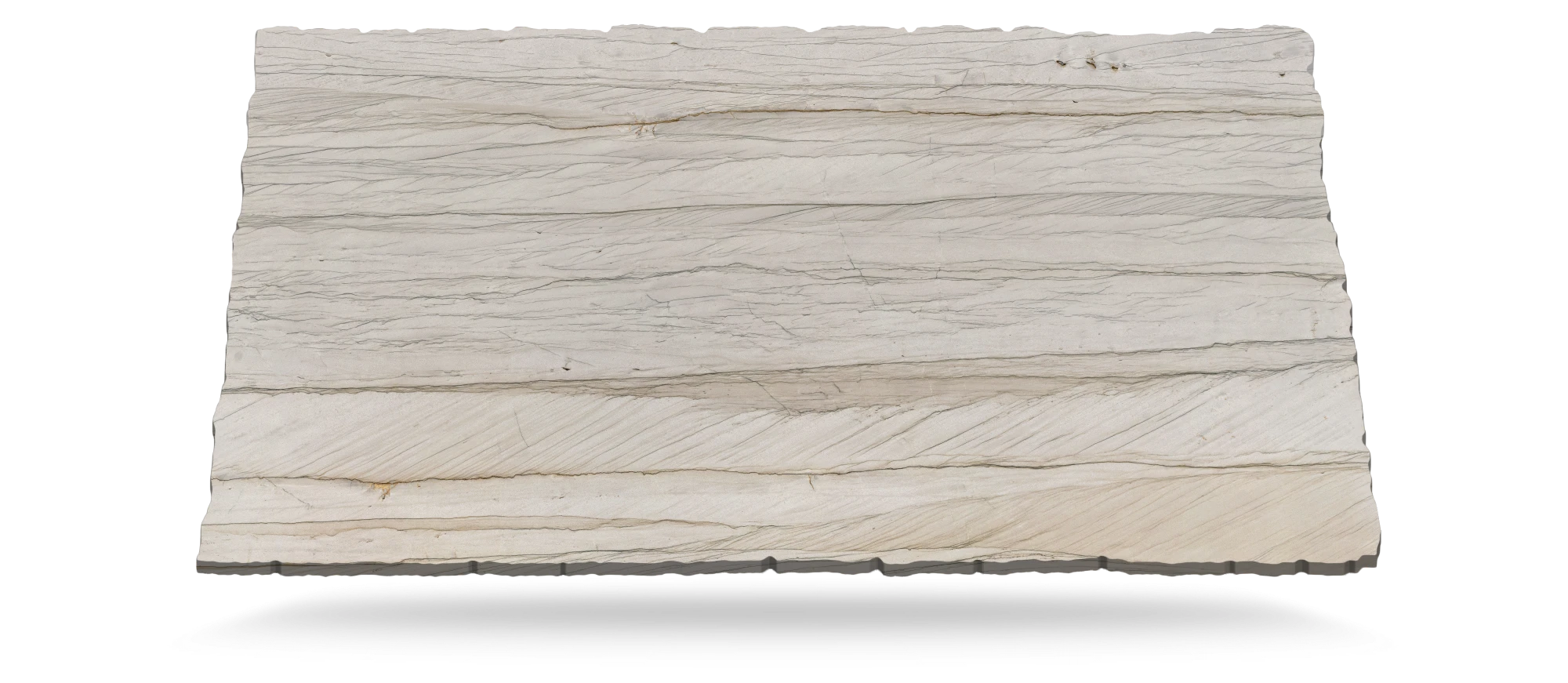 Araci showcases the natural beauty of Brazilian Mustang quartzite, featuring a soft creamy base crossed by curved and straight veins in varying shades of grey and beige. The layered movement creates a calm yet expressive surface, giving interiors a refined natural stone character with excellent visual depth. As part of the Sensa range, Araci is designed with stain-resistant protection, helping preserve the stone’s natural appearance while supporting everyday use. It pairs beautifully with timber cabinetry, warm whites, brushed metals, soft greys, and neutral contemporary palettes. Suitable for kitchen benchtops, waterfall islands, splashbacks, bathroom vanities, wall cladding, and feature applications, Araci brings a luxurious, organic, and timeless finish to residential and commercial interiors.