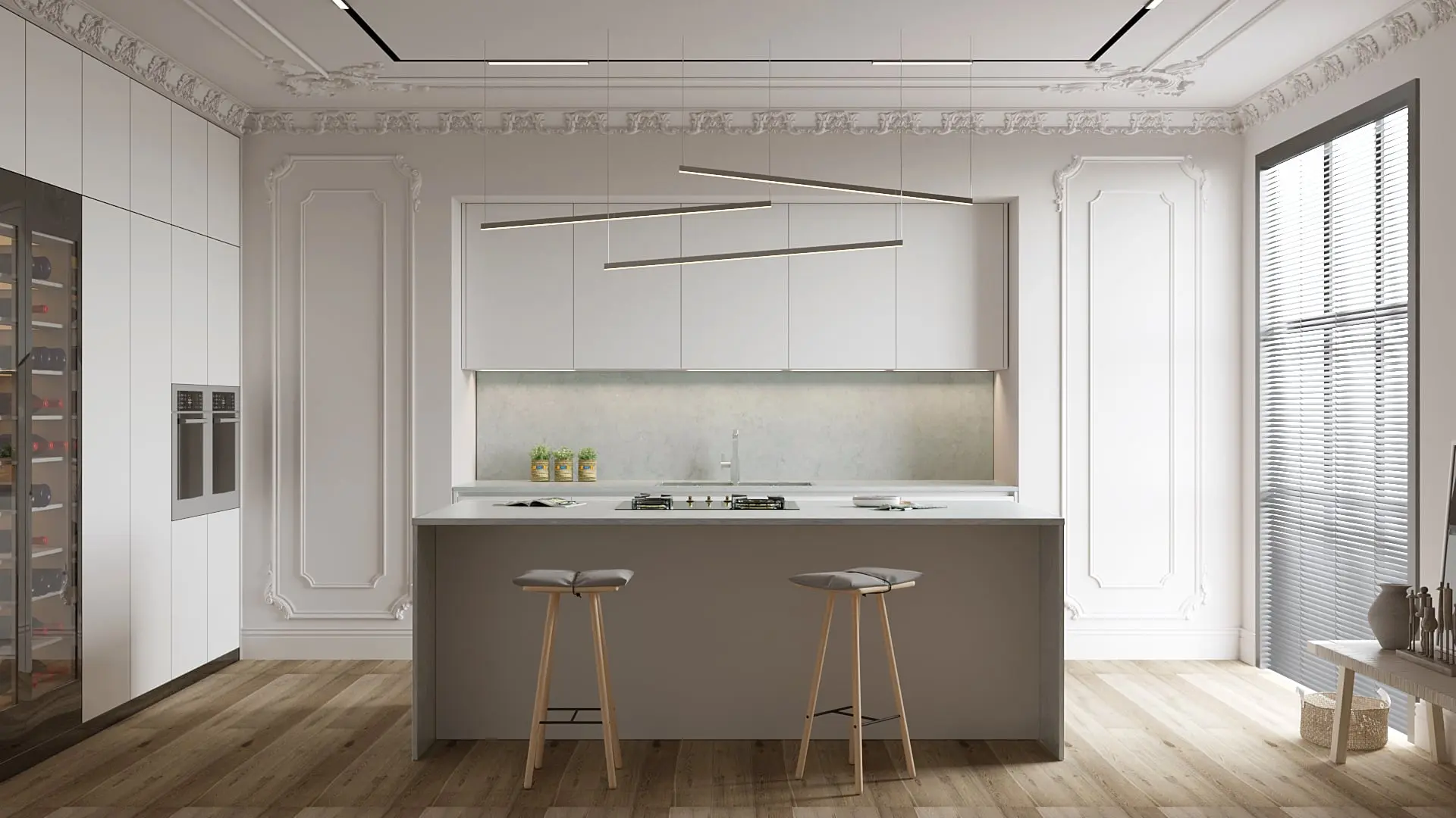 The understated pattern gives Brumous a calm yet architectural presence, making it ideal for kitchen benchtops, waterfall islands, splashbacks, bathroom vanities, and feature wall applications. It works seamlessly with modern interiors, pairing well with timber finishes, matte black accents, and minimalist cabinetry.