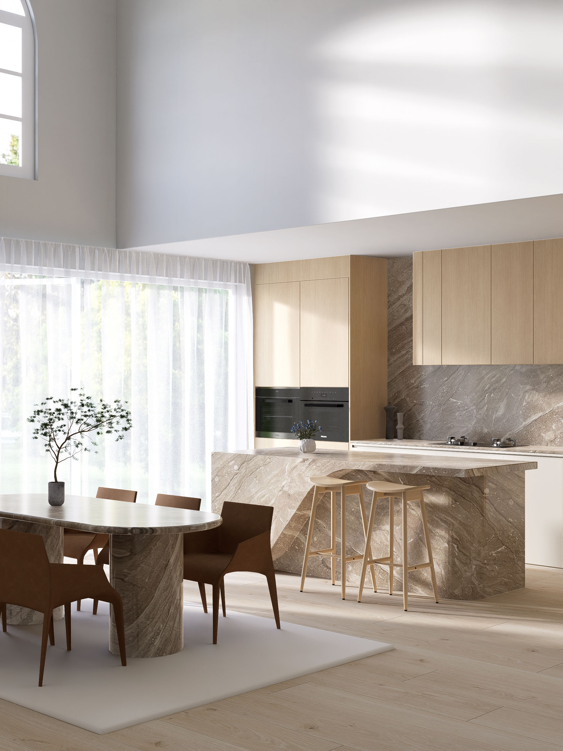 Daino Reale is perfect for kitchen benchtops, bathroom vanities, feature walls, flooring, and commercial interiors, especially where warmth and timeless elegance are key. Its neutral palette pairs effortlessly with timber, brass, soft greys, and creamy whites, making it one of the most versatile marble options available.