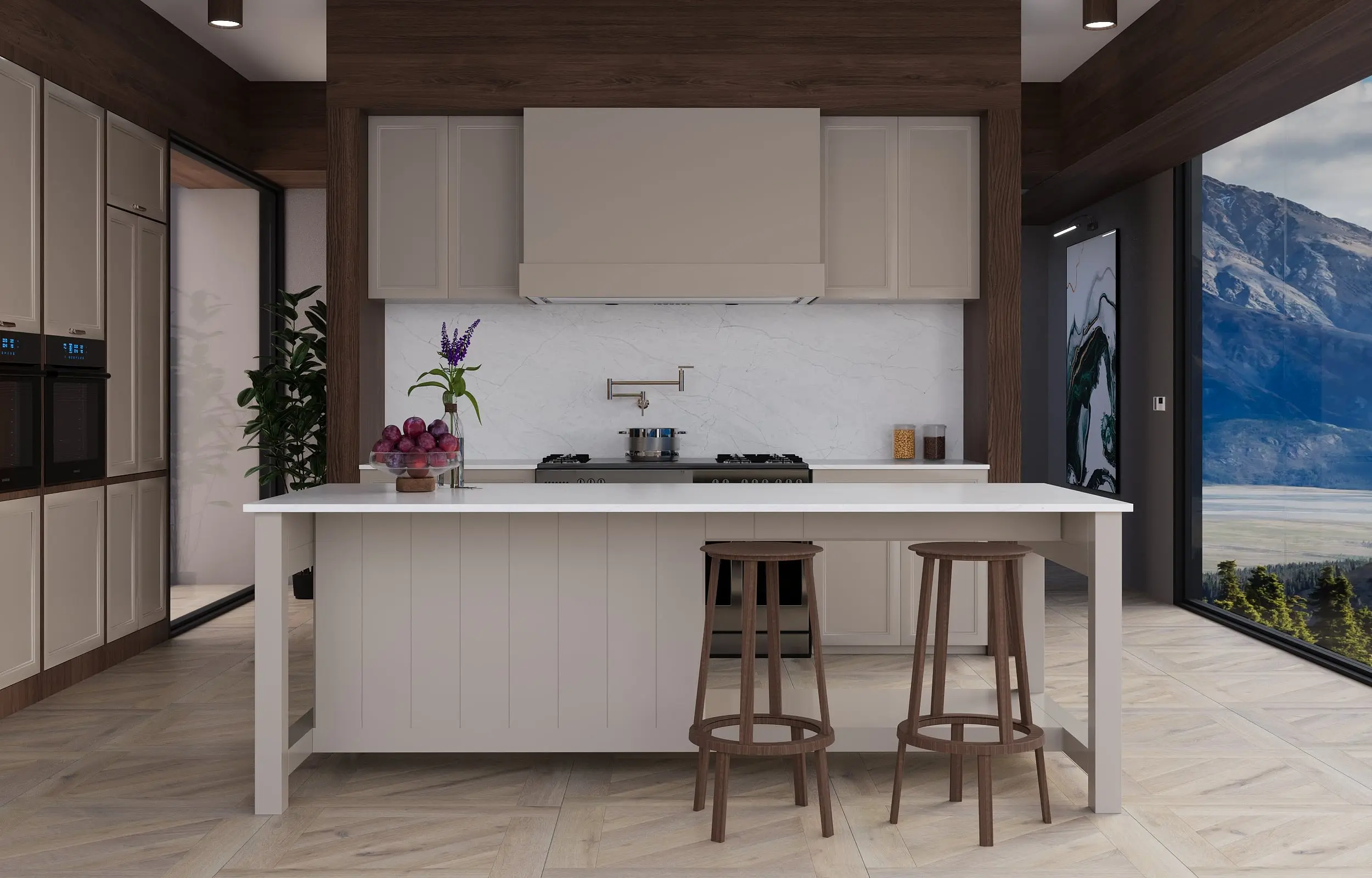 Eirian is a beautifully detailed engineered stone inspired by the natural movement of weathered coastal stone. Its soft white base is enriched with flowing grey veining and subtle warm undertones, creating depth and a sense of organic movement across the surface.