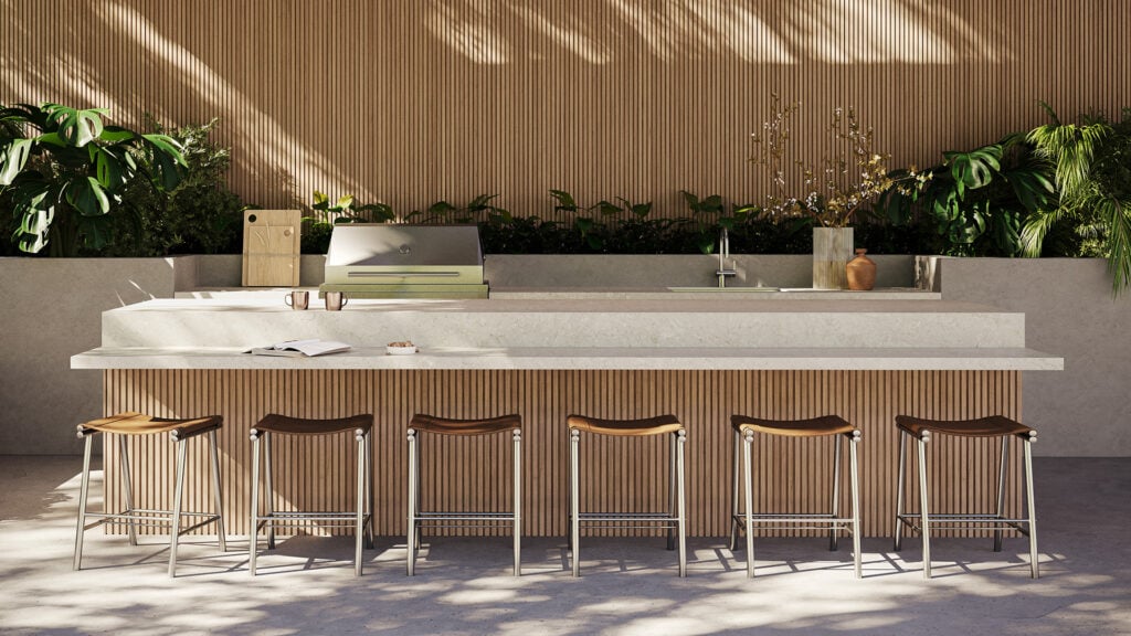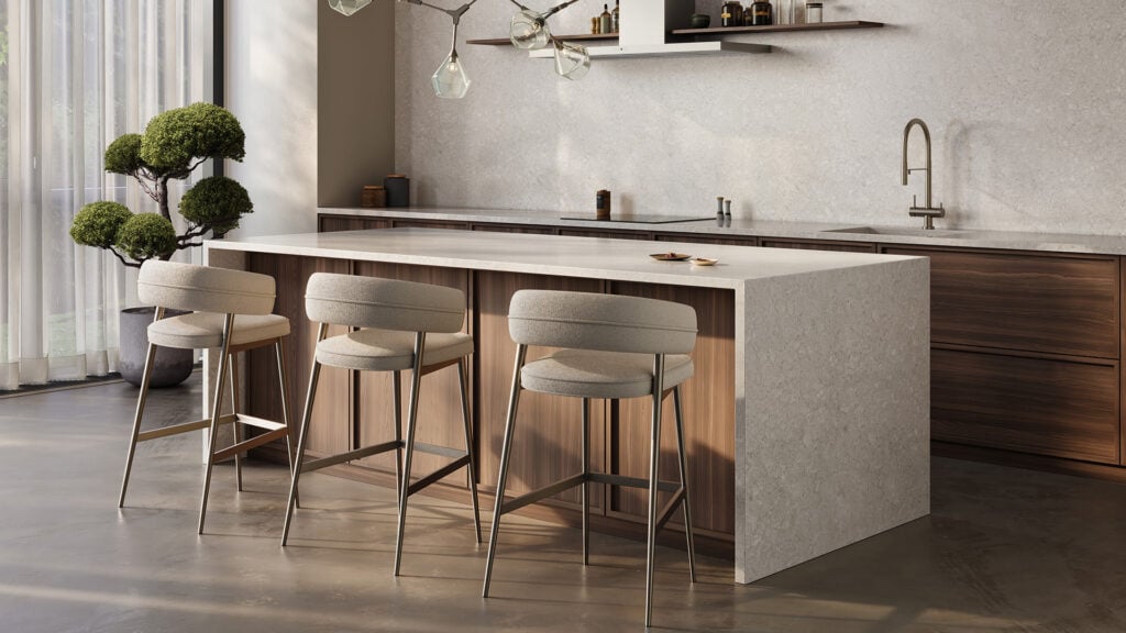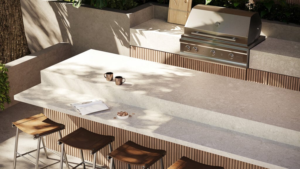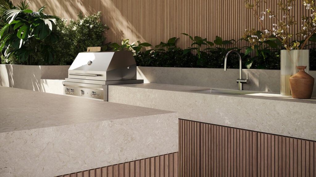 545 Fossillia features a gentle ecru base enriched with warm white, cream, and lichen-toned veining, creating a soft mineral-inspired surface with calm natural movement. Its honed sculpted effect adds subtle texture and depth, allowing the surface to feel refined, warm, and architectural without becoming visually heavy. The neutral palette pairs beautifully with timber cabinetry, soft beige tones, natural stone accents, brushed metals, and textured materials. Suitable for indoor and outdoor applications, 545 Fossillia is an elegant option for kitchen benchtops, bathroom vanities, outdoor kitchen surfaces, splashbacks, and feature walls where a soft, sophisticated finish is desired.
