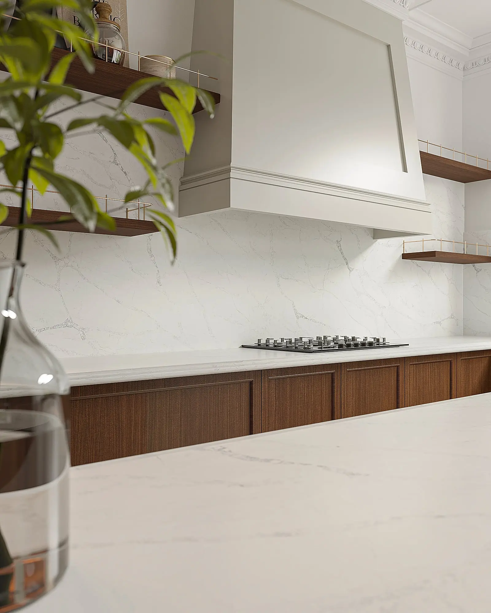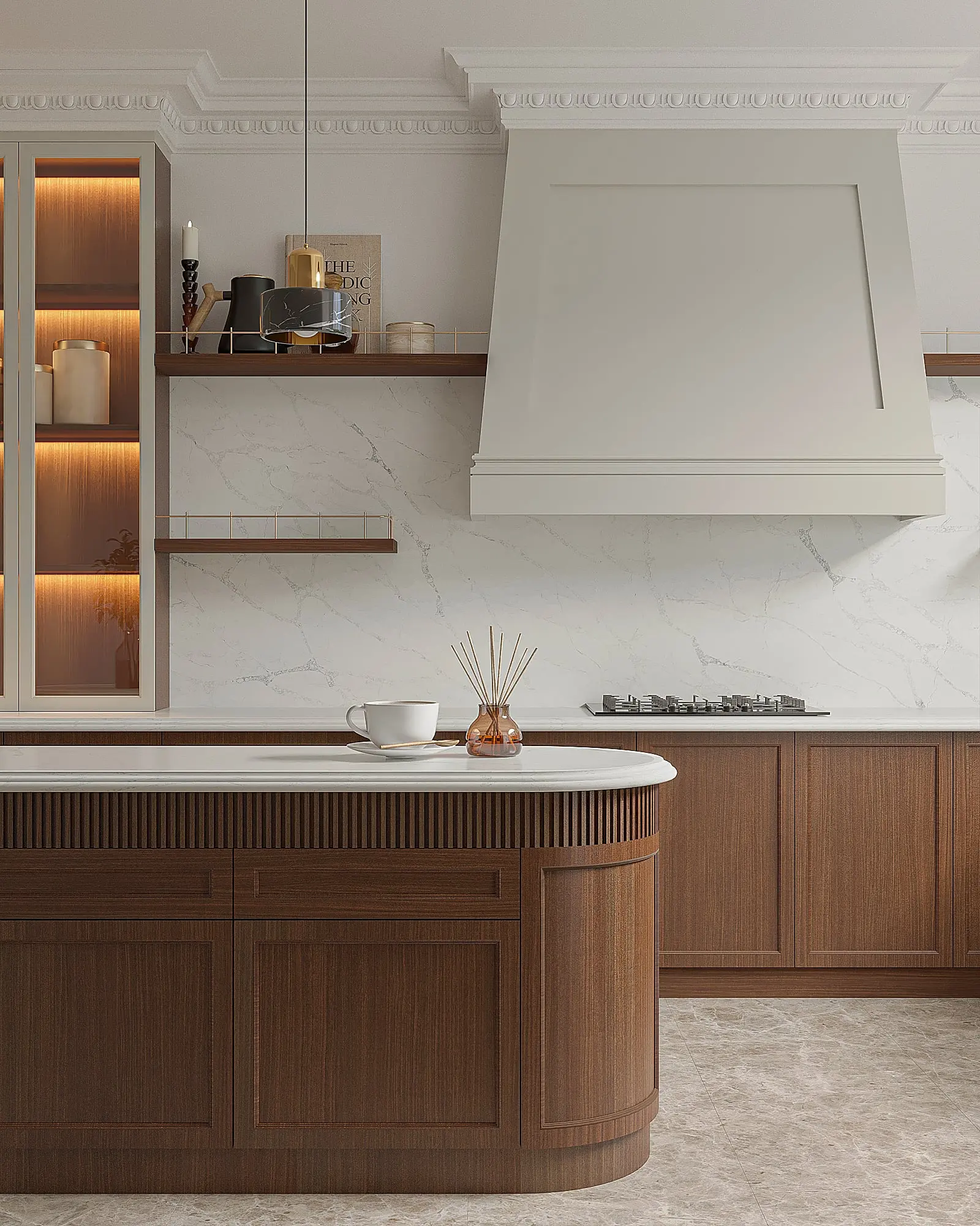 Idalie works beautifully in both modern and classic interiors, pairing effortlessly with timber finishes, neutral palettes, and darker cabinetry. The polished finish enhances the softness of the veining while maintaining a clean and luxurious look.