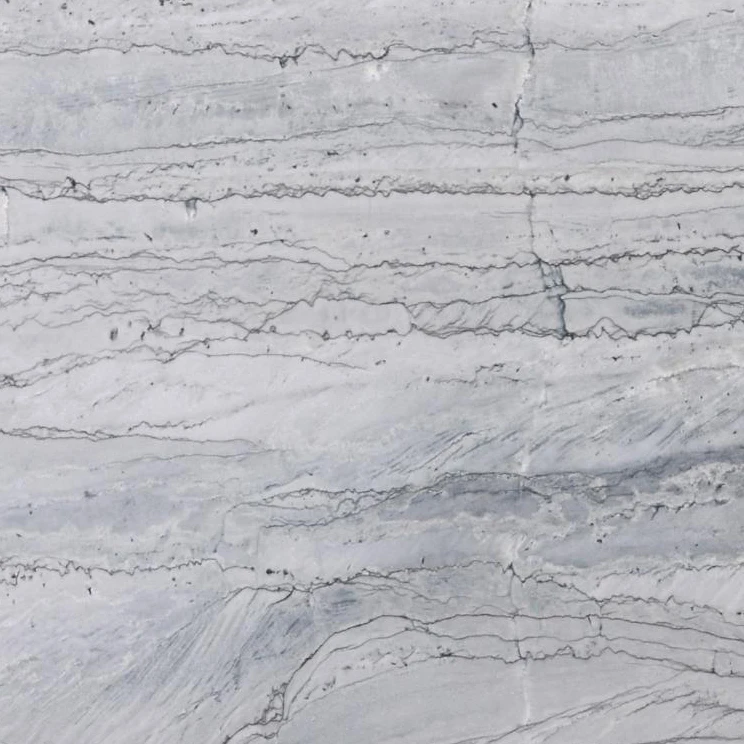 Maldivas is a captivating quartzite available at Bamby Stone, quarried in Brazil and characterised by its soft grey base enriched with delicate black veining and bold blue streaks. The natural flow across the slab creates a sense of movement reminiscent of ocean waves and layered landscapes, giving each piece a dynamic yet balanced appearance.