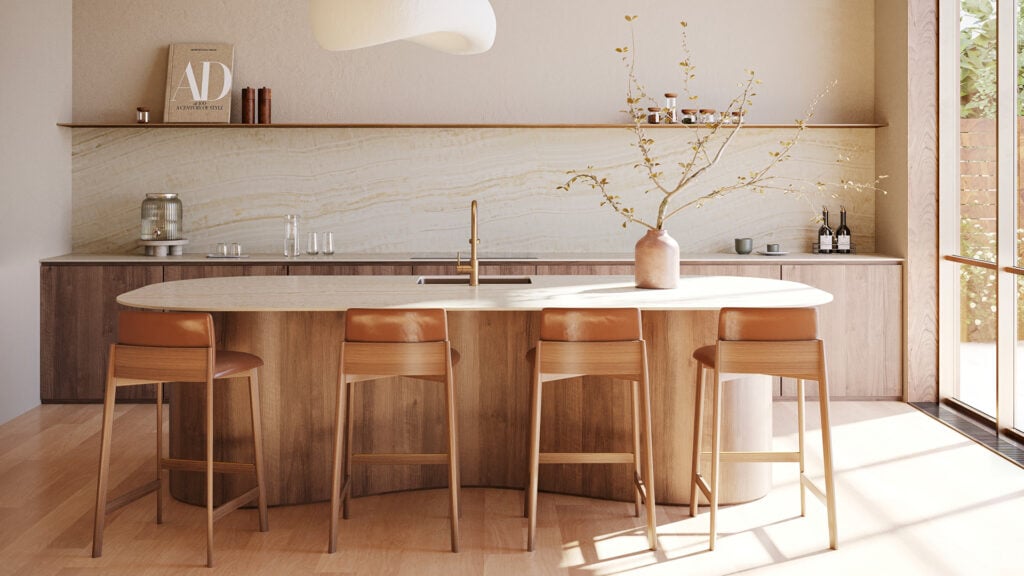 509 Onyxa captures the luxurious character of natural onyx through softly shifting layers of warm white, translucent beige, gold, rust, and taupe. Its flowing veined pattern creates a serene sense of movement, while the honed finish and luster effect add refined texture and gentle depth across the surface. The warm neutral palette makes 509 Onyxa a beautiful choice for interiors that need softness, warmth, and sophistication, pairing especially well with timber cabinetry, brushed metals, warm whites, beige tones, and contemporary natural textures. Suitable for indoor and outdoor applications, 509 Onyxa works beautifully across kitchen benchtops, bathroom vanities, outdoor kitchens, splashbacks, feature walls, and statement island surfaces.