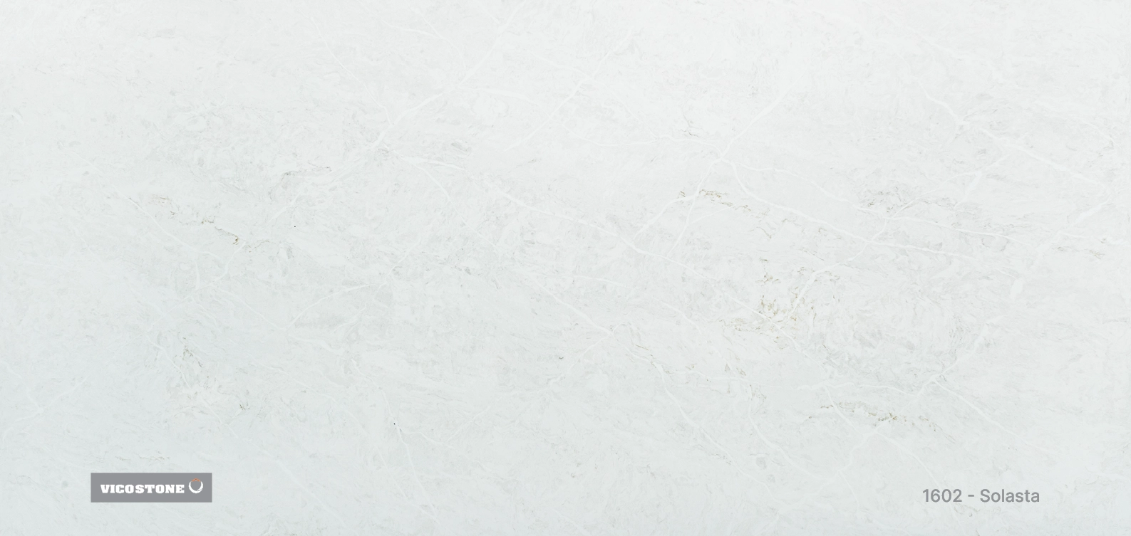 Solasta is a warm-toned engineered stone featuring a soft light base with gentle flowing movement, inspired by natural quartzite. Ideal for benchtops, vanities, splashbacks, and feature walls, delivering a calm and elegant finish.