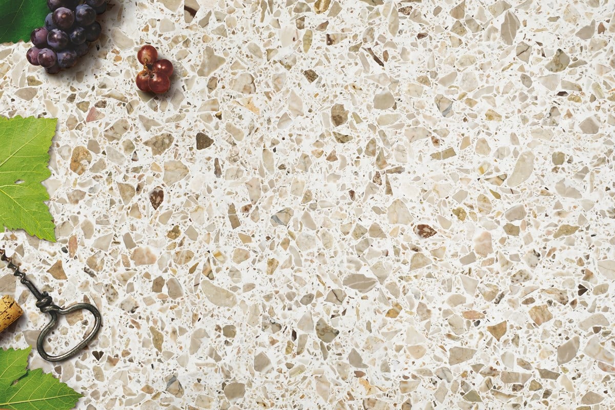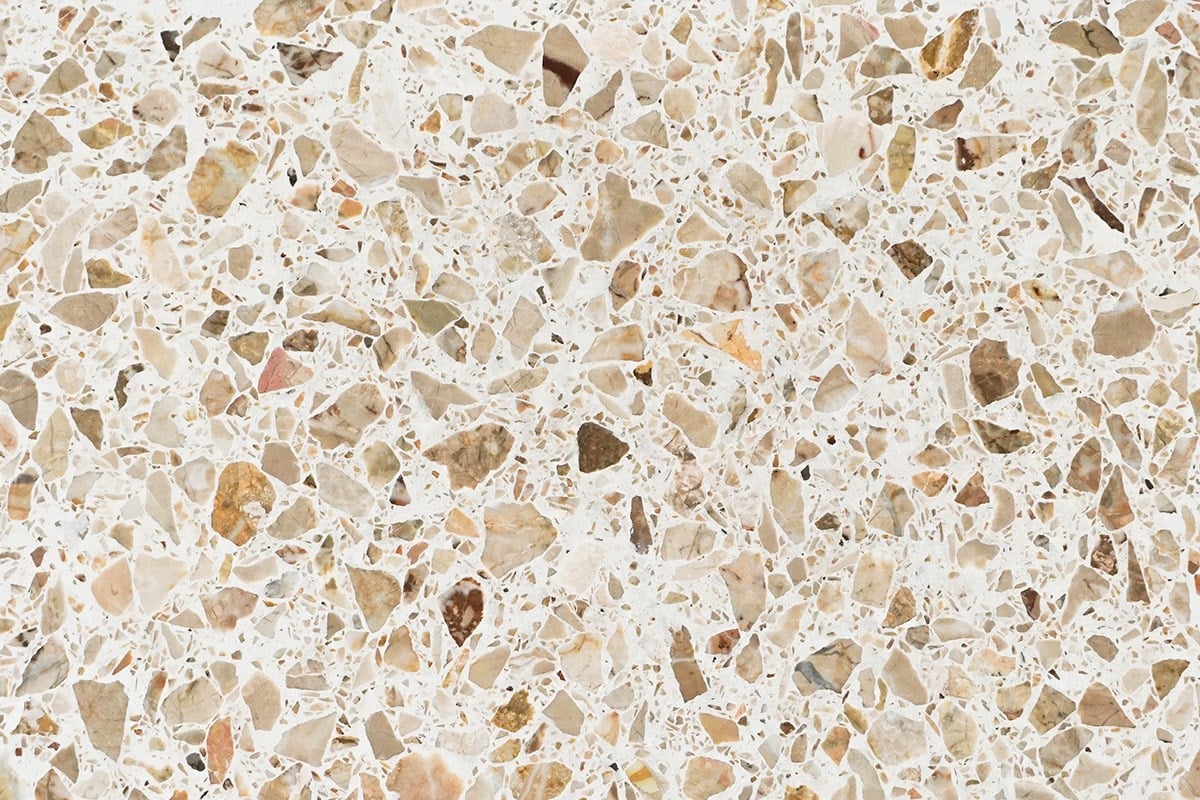 Balanced terrazzo surface with soft speckled texture, perfect for warm and inviting interiors.