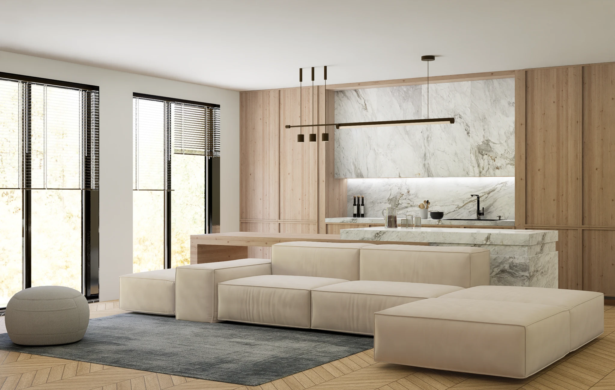 The beauty of Volakas lies in its ability to deliver classic marble aesthetics with slightly more movement than Carrara, yet still remain soft and approachable compared to bold statement stones. The variation in vein intensity gives each slab a unique identity while preserving a cohesive overall look.