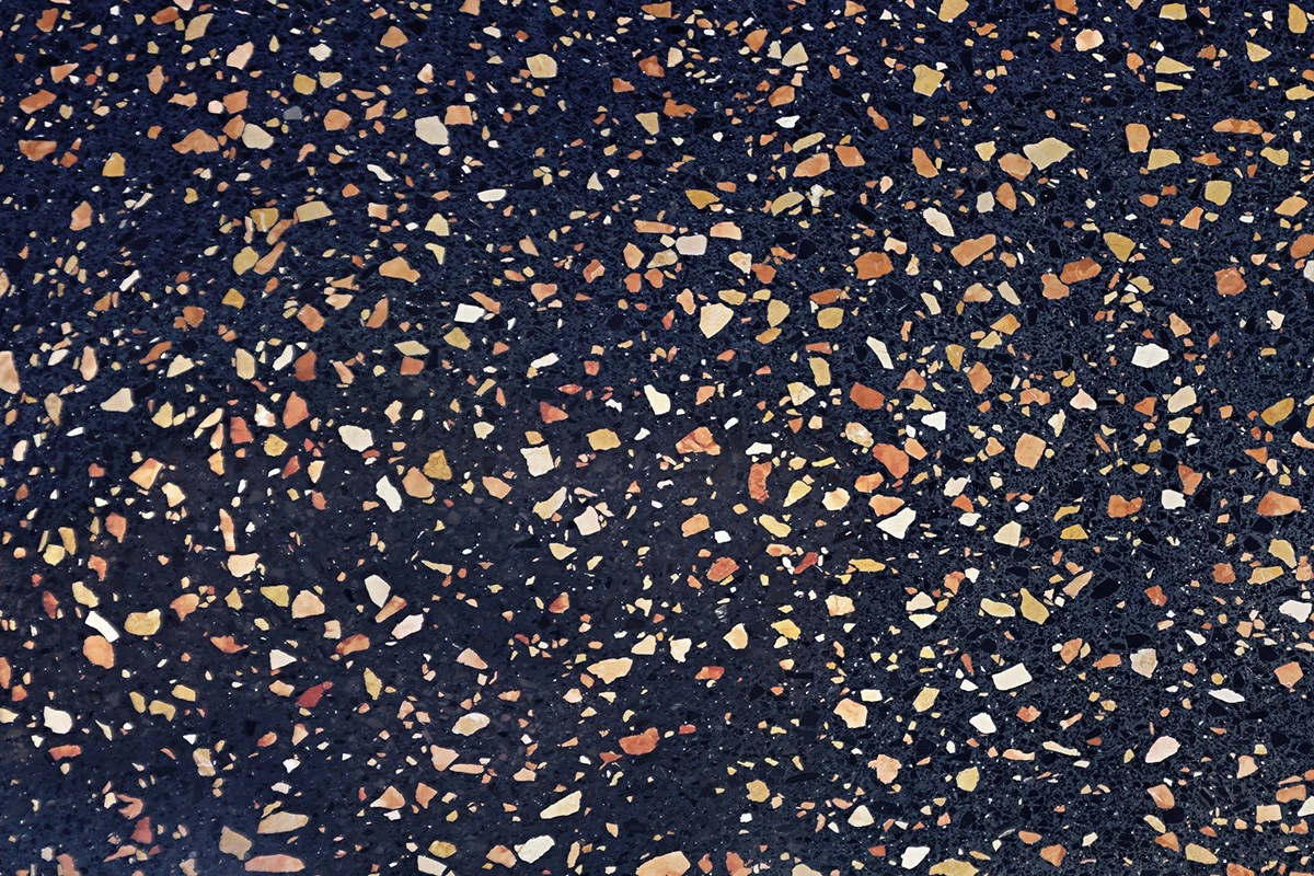 Earthy terrazzo surface with rich character, perfect for bold and grounded interiors.