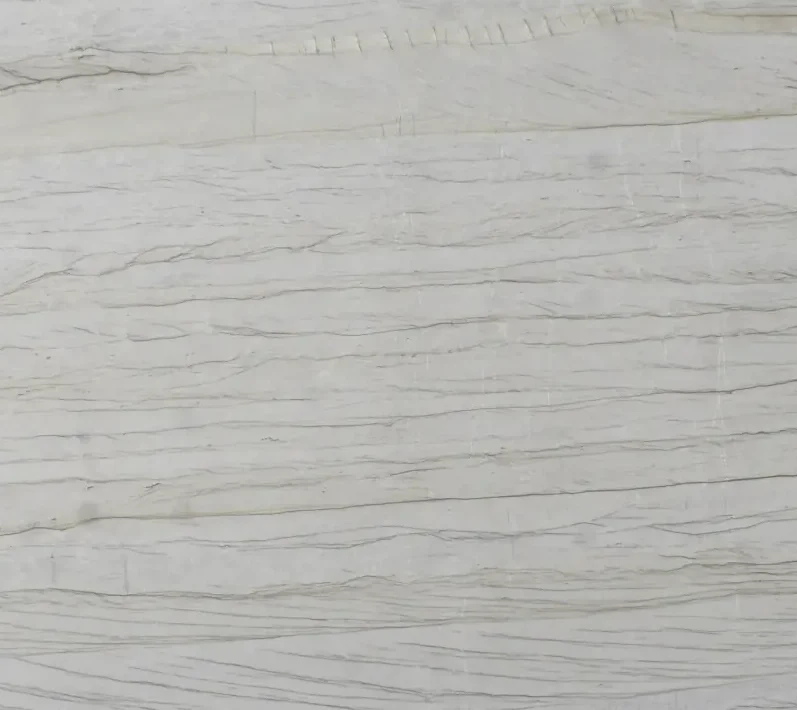 Polished Quartzite with white base and soft grey veining—ideal for benchtops, vanities, and walls.